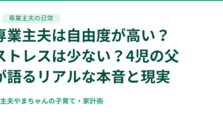 このブログを書いているのは、30代後半の専業主夫、やまちゃんです。妻と子ども4人(中学生・小学生・小学生・保育園)の6人家族で、毎日賑やかに暮らしています。