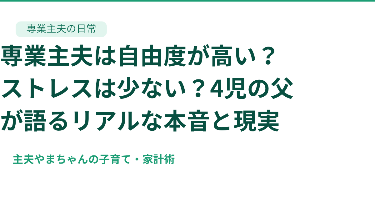 「専業主夫って楽そう」と思っていませんか?実際に4人の子どもを育てる中で感じたのは、自由度やストレスの少なさの一方で、大きな責任もあるという現実でした。体験談ベースでリアルに解説します。